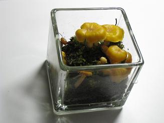 100均のガラスキューブで栽培しています。